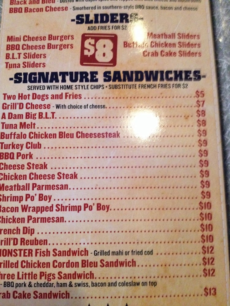 Vegetarian options abound, while the casual setting fosters a welcoming atmosphere for families and groups alike. Enjoy Happy Hour Specials and kick back in the heated outdoor seating—perfect for any sports enthusiast! Whether it's a late-night craving or dinner with friends, A Dam Good Sports Bar has something for everyone. Don’t forget to bring your furry friends, as they’re welcome too!